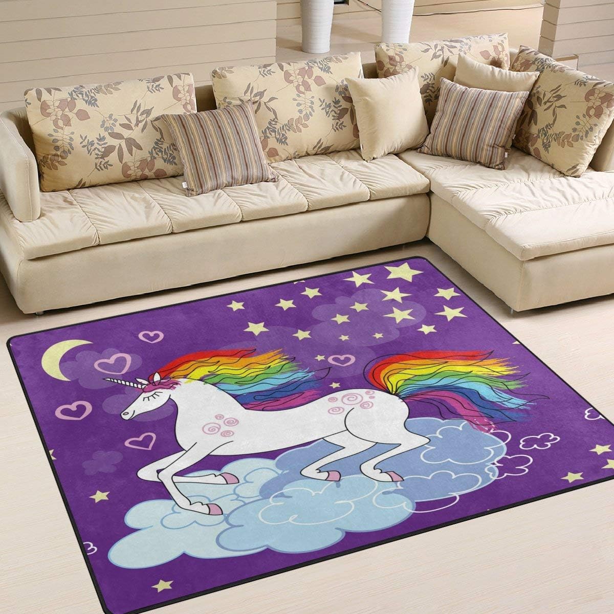 Area Rug 63x48 Inch Moon Star Unicorn Rainbow Love Heart For