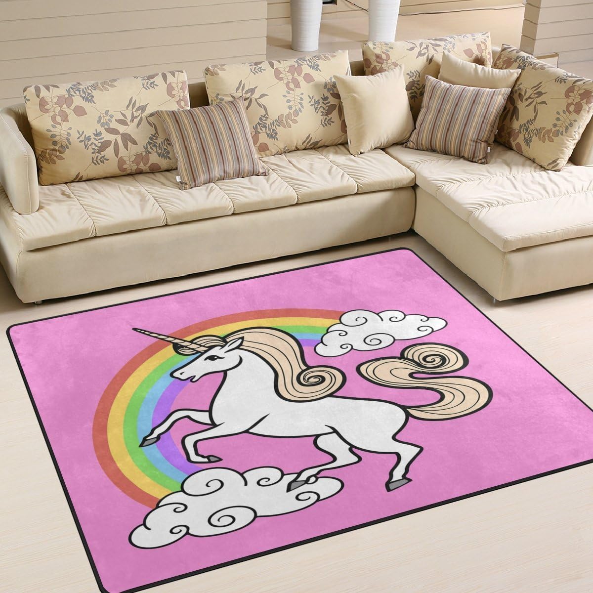 Area Rug 80x58 Inch Cartoon Unicorn Pink Rainbow For Living Room