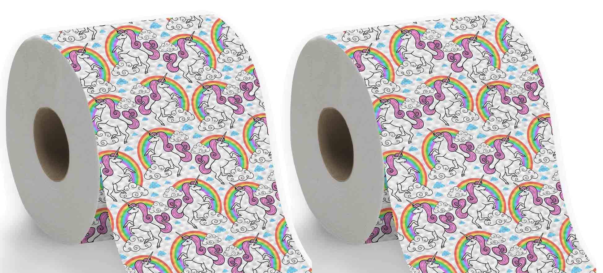 Amazon Com Seymour Butz 2 Rolls Rainbow Unicorn Funny Toilet Paper Perfect For Gag Gifts White Elephant Gifts Or Potty Training Toys Games