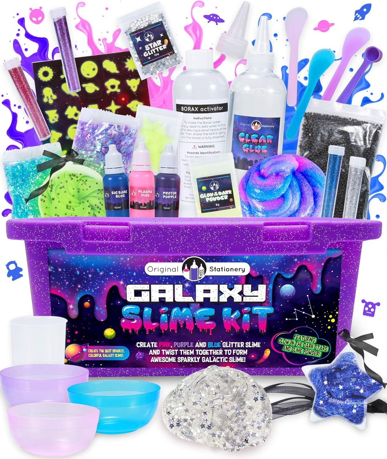 Amazon Com Original Stationery Galaxy Slime Kit With Glow In The Dark Stars Slime Powder To Make Glitter Slime Galactic Slime For Boys And Girls Toys Games