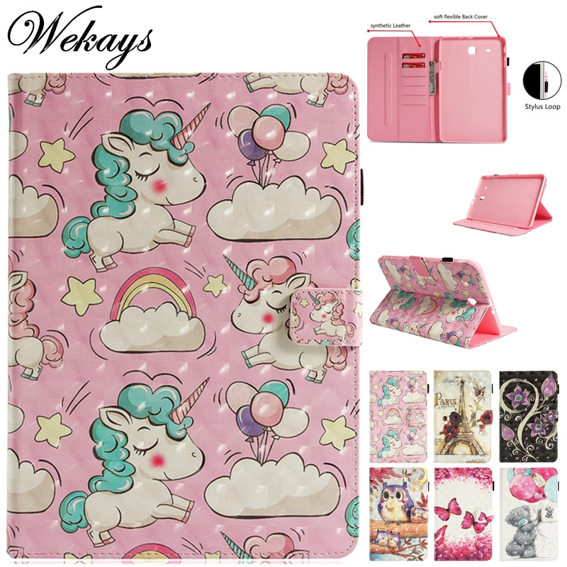 Wekays For Samsung Tab E T560 Cute Cartoon Unicorn Leather Fundas