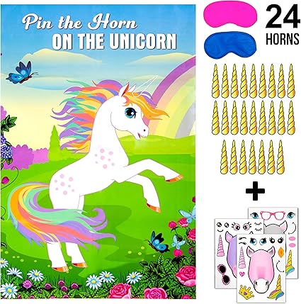 Amazon Com Birthday Party Pin The Horn On The Unicorn Favor Game