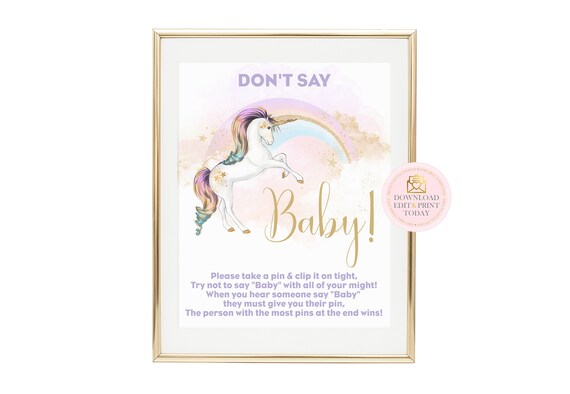 Unicorn Don T Say Baby Game Unicorn Baby Shower Pink Etsy
