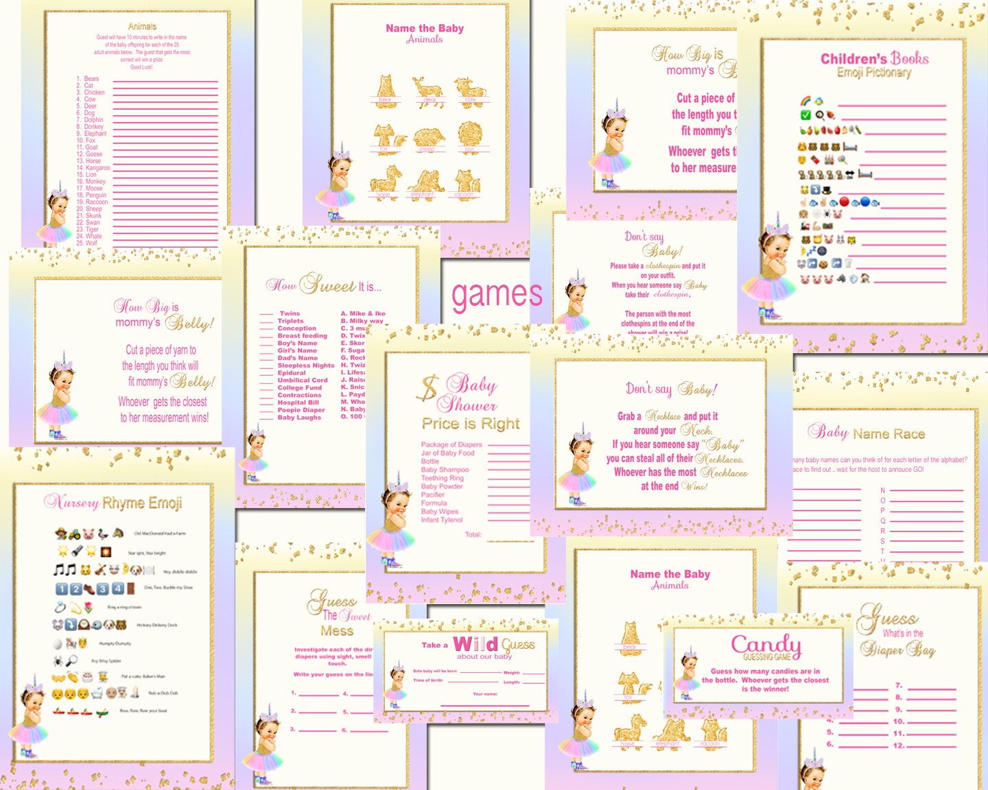 Unicorn Baby Shower Games Baby Shower Games Girl Game Sets Etsy