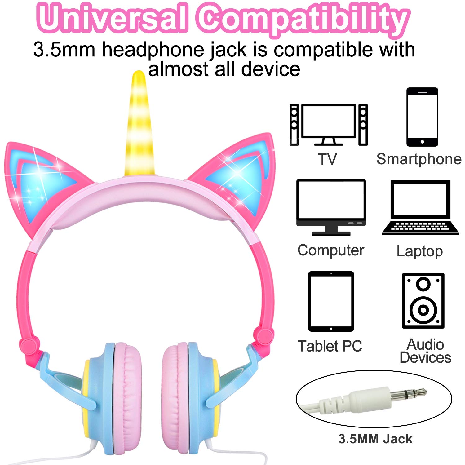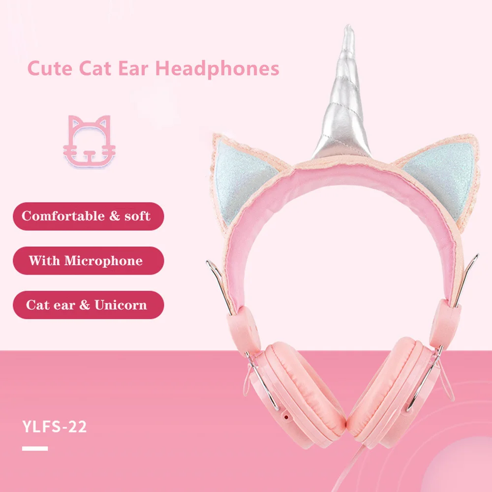 Jinserta Cute Cat Ear Headphone Unicorns 3 5mm Wired Kids