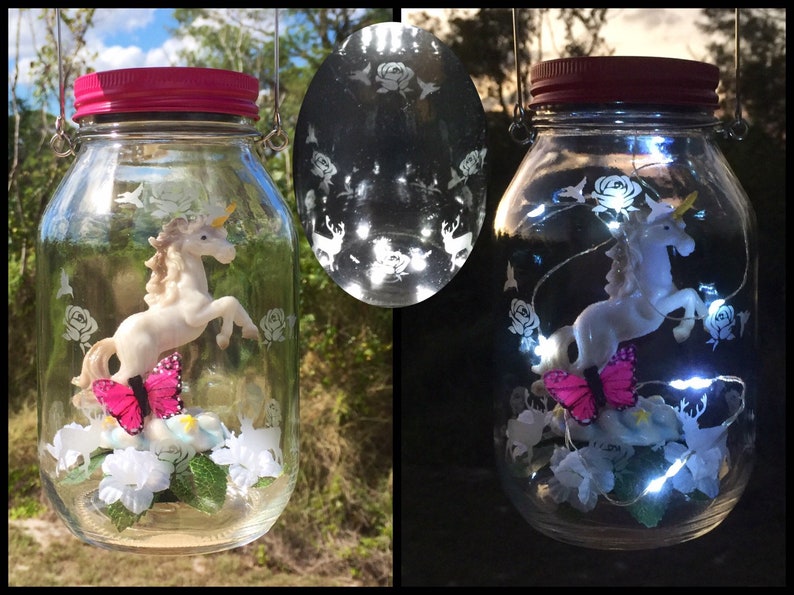 Solar Jar Lights Unicorn Lantern Outdoor Lighting Fantasy Etsy