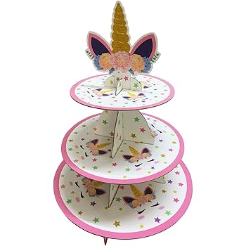 Jettingbuy 3 Tier Unicorn Cardboard Cupcake Stand Dessert Cupcake