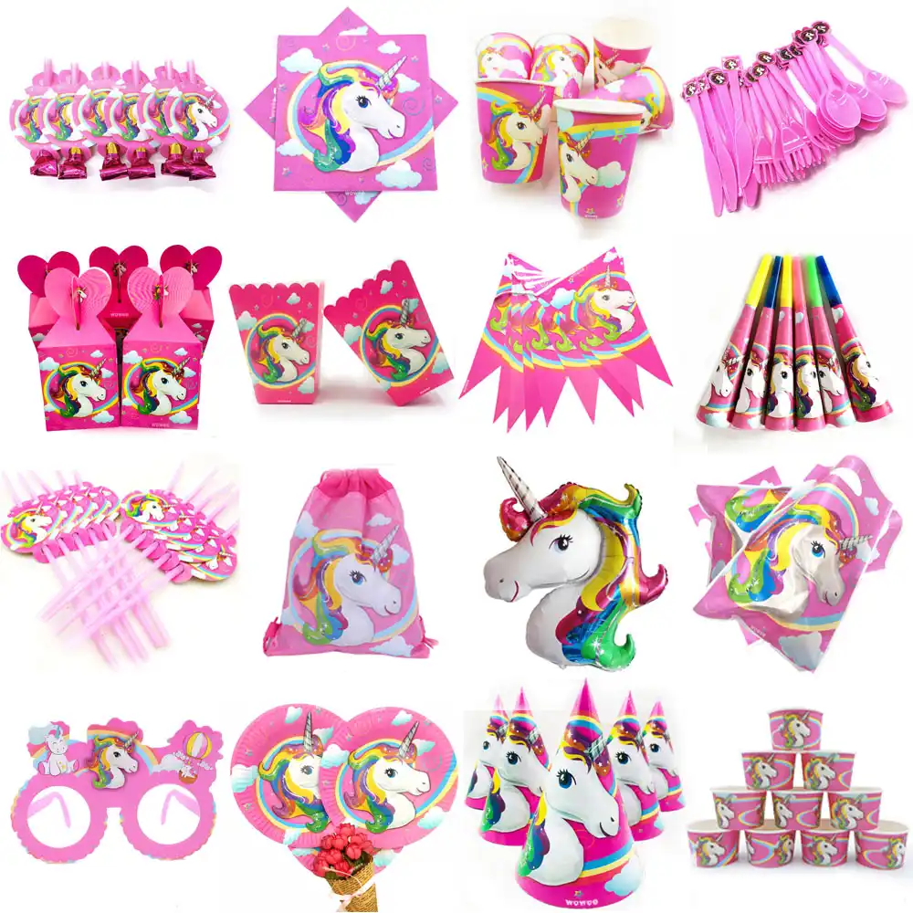 10 Kids Unicorn Disposable Tableware Happy Birthday Party Supplies