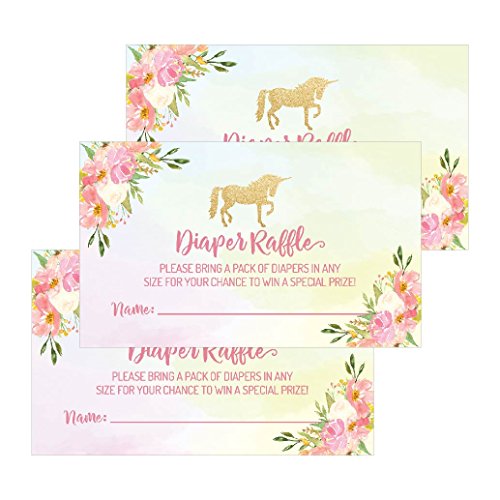 25 Unicorn Diaper Raffle Ticket Lottery Insert Cards For Pink Girl
