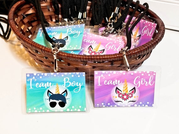Unicorn Team Boy Or Team Girl Tags On Lanyards For Gender Reveal