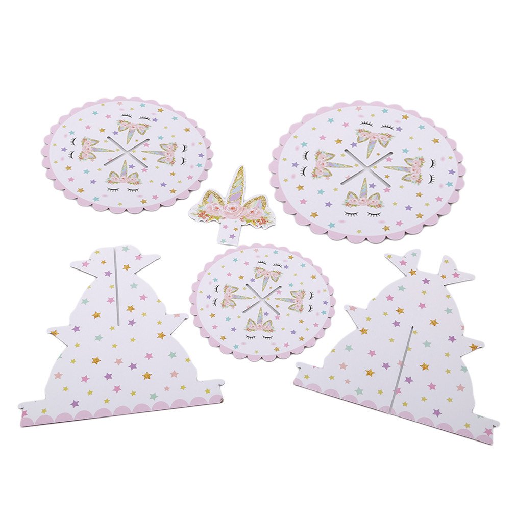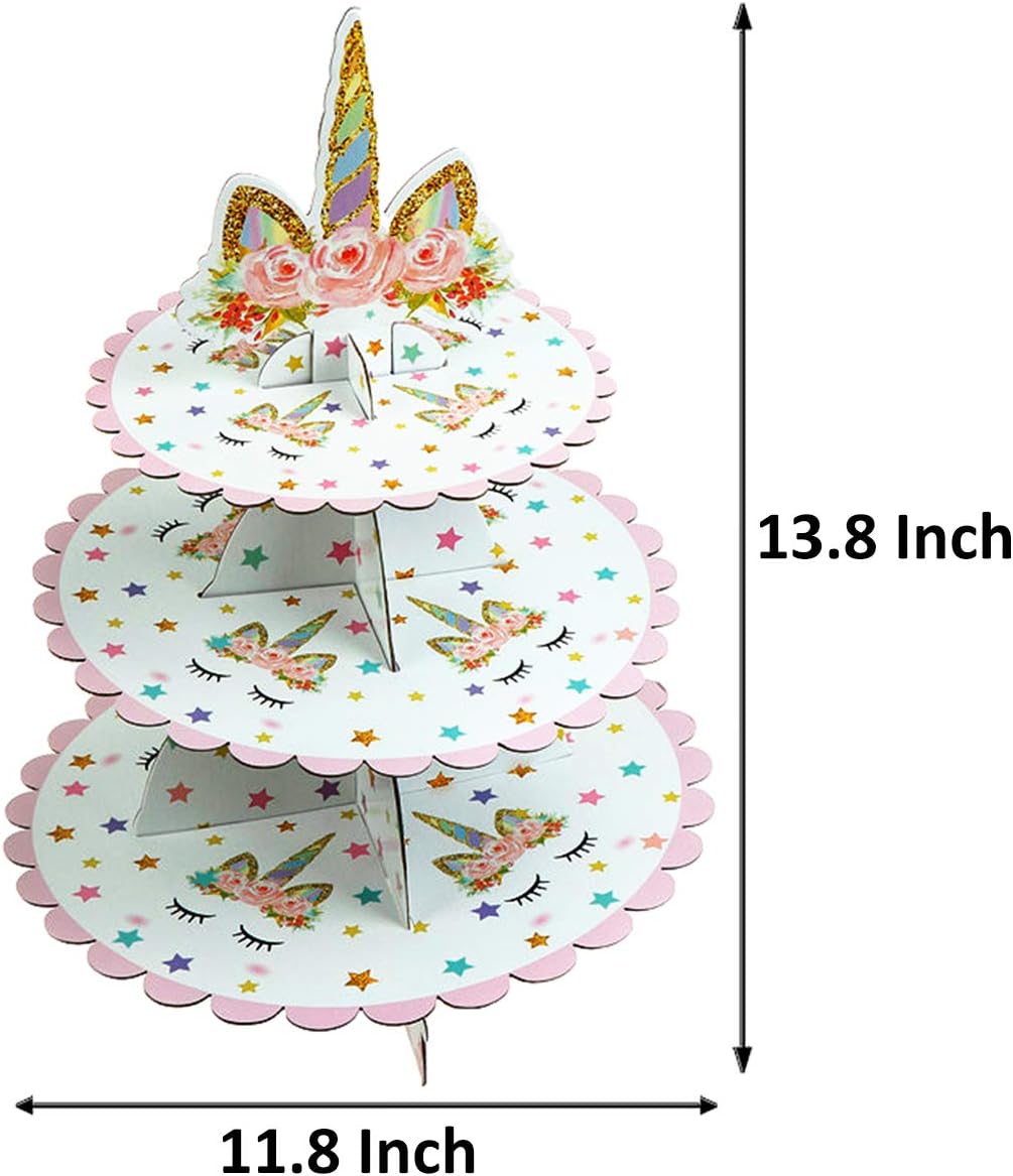 Jettingbuy 3 Tier Unicorn Cardboard Cupcake Stand Dessert Cupcake