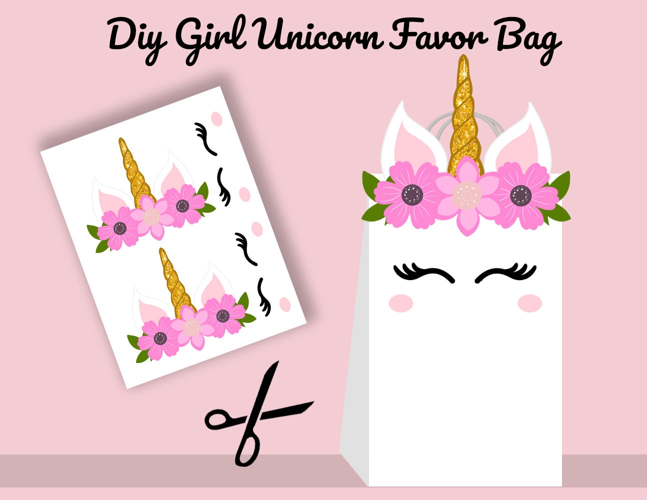 Girl Unicorn Favors Unicorn Party Bags Printable Unicorn Diy Etsy