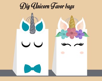 Unicorn Diy Favor Bag Template Unicorn Party Bags Printable Etsy