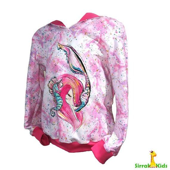 Girls Pink Mermaid Hoodie Gift Sea Horse Gifts Unicorn Etsy