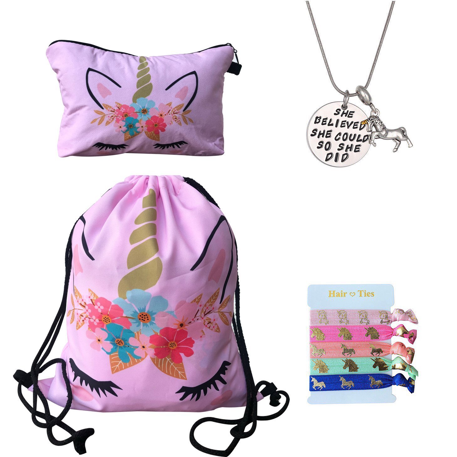Unicorn Gifts For Girls Unicorn Drawstring Backpack Makeup Bag