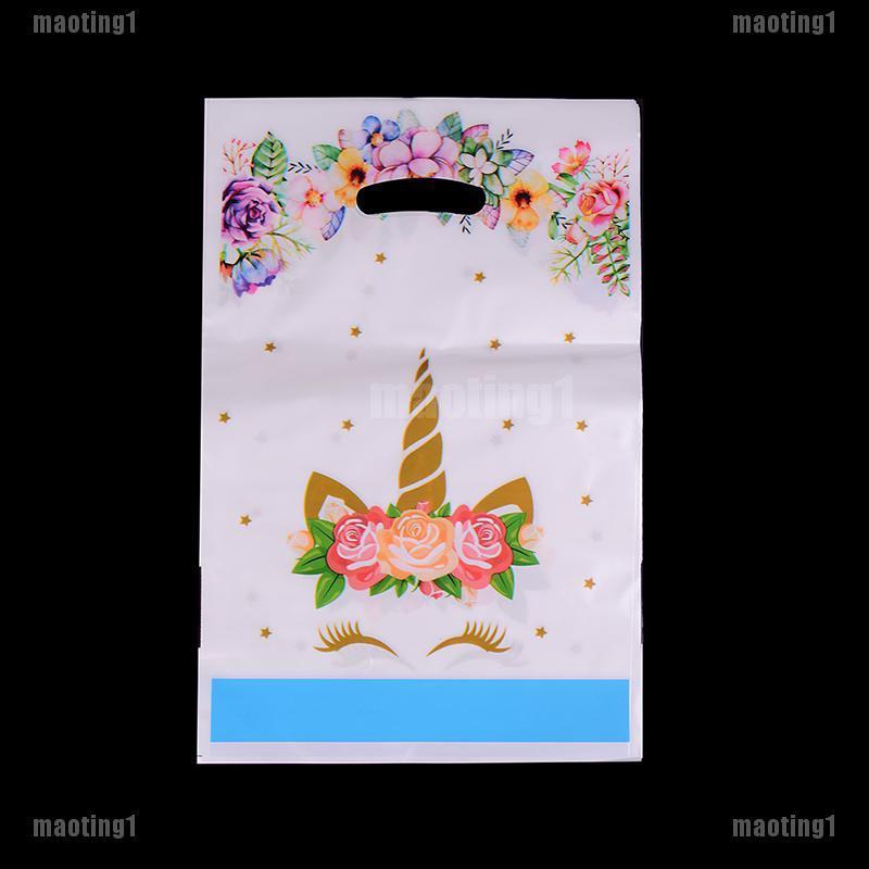 Mt1 10pcs Flower Unicorn Gift Bags Plastic Loot Bags Candy Bag