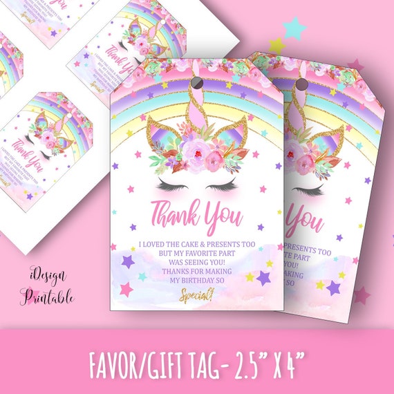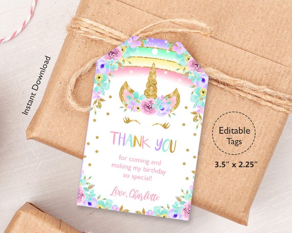 Unicorn Thank You Tags Printable Editable Birthday Tags Unicorn