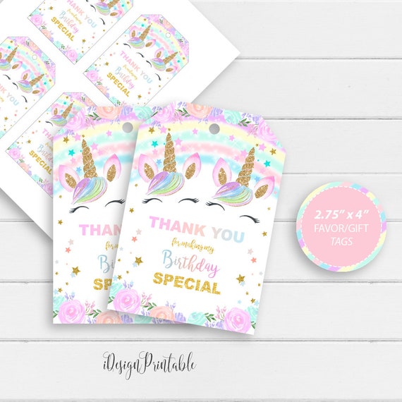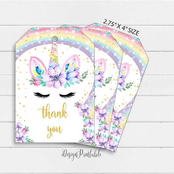 Rainbow Unicorn Thank You Tags Floral Unicorn Favor Tags Etsy