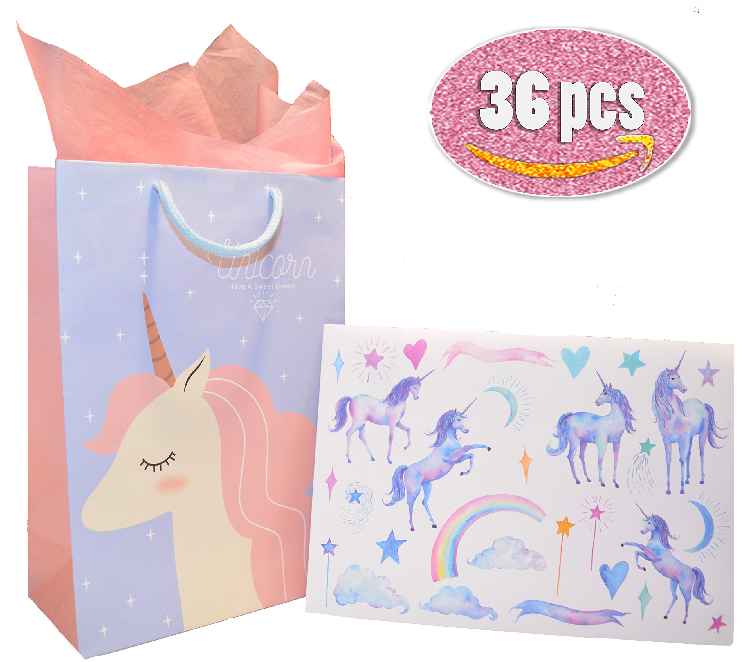 Unicorn Gift Bag Medium Pink Tissue Paper Girls Present Wrap Set