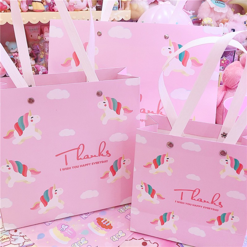Lohay02 Cloud Rainbow Unicorn Pink Paper Bag Handbag Gift Wrap