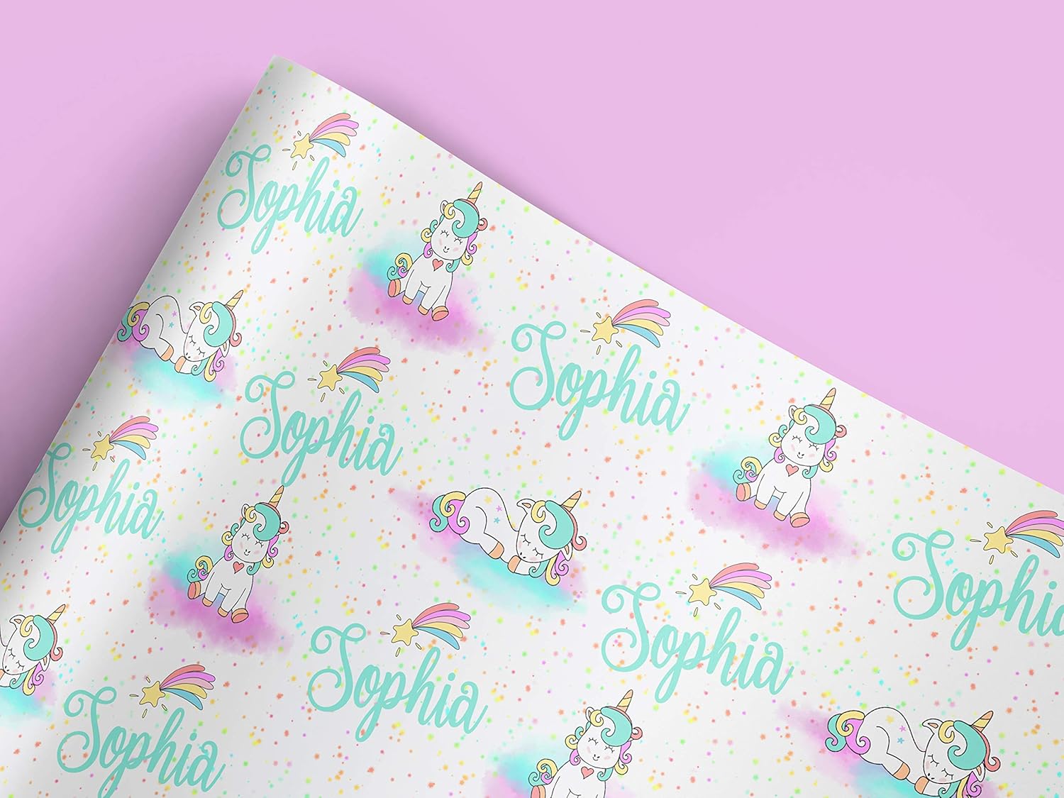 Amazon Com Unicorn Rainbow Personalized Wrapping Paper Gift Wrap