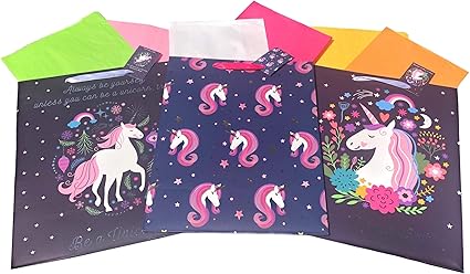 Amazon Com Celebration Purple Unicorn Gift Bags Set Of 3 Large