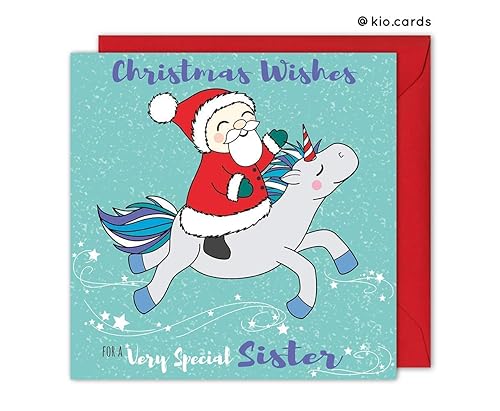 Sister Christmas Card Santa And Unicorn Unicorn Lover Gifts