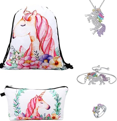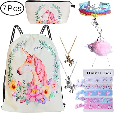 Standie 7 Pcs Drawstring Bag For Unicorn Gift For Girls Makeup Bag