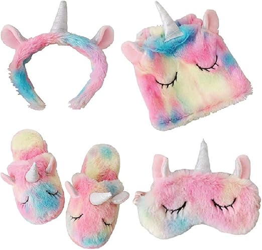 Bestyuan Rainbow Unicorn Slippers Plush Blindfold Eyeshade Cute