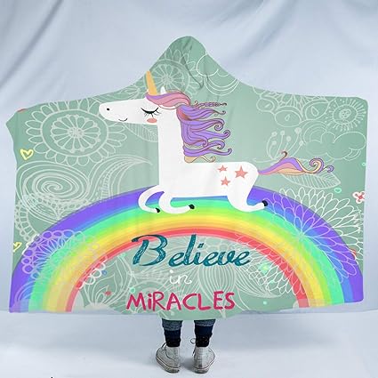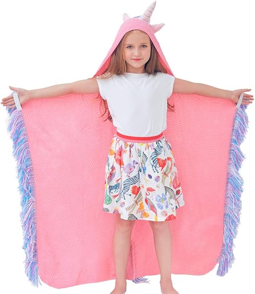 Beinou Girls Unicorn Blanket Hooded Blankets Plush Throw Blanket