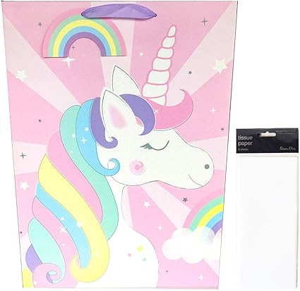 Unicorn Gift Bag Extra Large Pink Tissue Paper Pack Present Wrap
