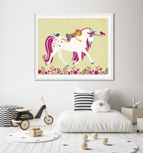Girl S Unicorn Print Unicorn Wall Art Unicorn Gifts Etsy