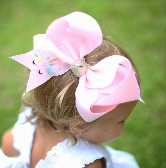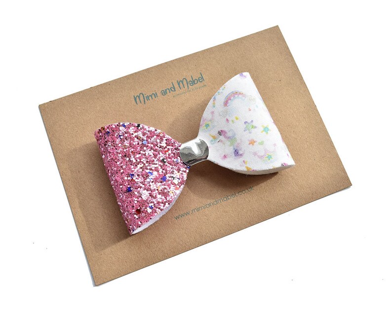 Unicorn Party Hair Bow Pink Glitter Bow Unicorn Gifts Etsy
