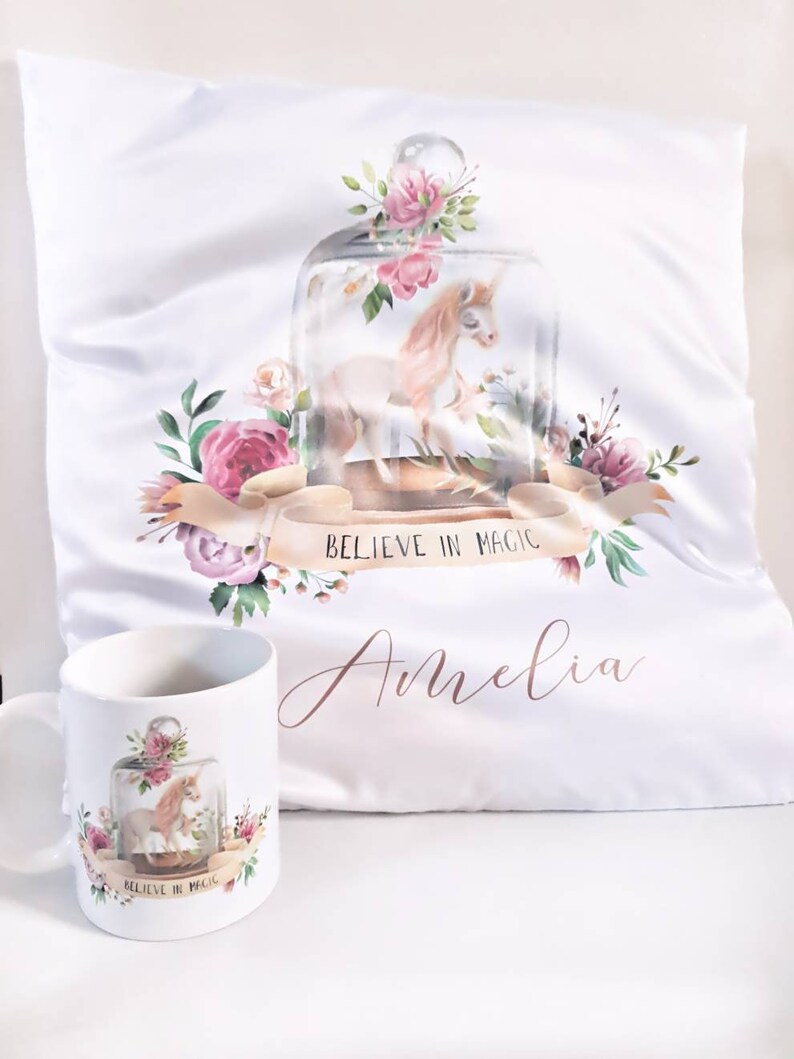 Personalised Unicorn Cushion Cover And Mug Set Unicorn Gifts Etsy