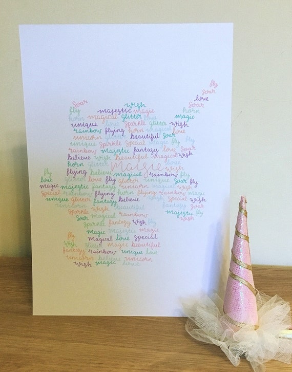 A4 Unicorn Personalised Hand Lettered Wall Art Unicorn Gifts Etsy