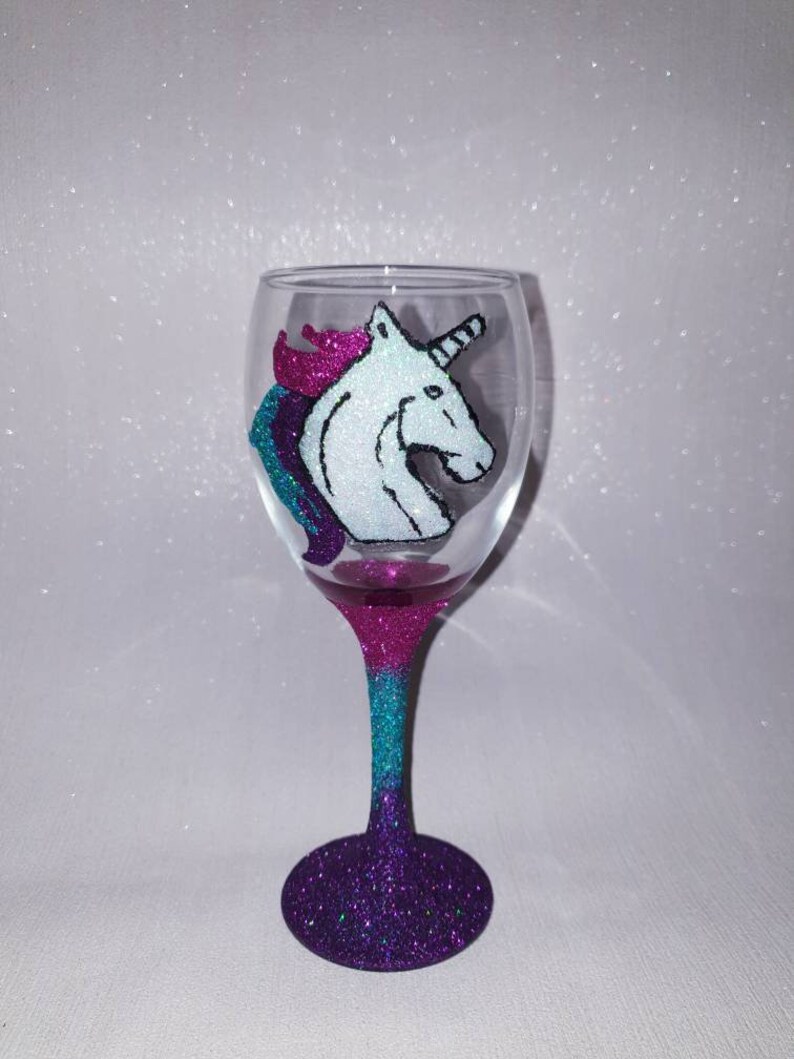 Unicorn Glitter Glass Wine Glass Unicorn Gifts Etsy