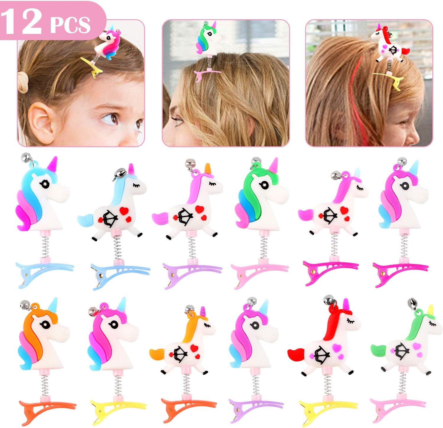 Vamei Unicorn Gifts For Girls 12pcs Unicorn Hair Clips With Bell