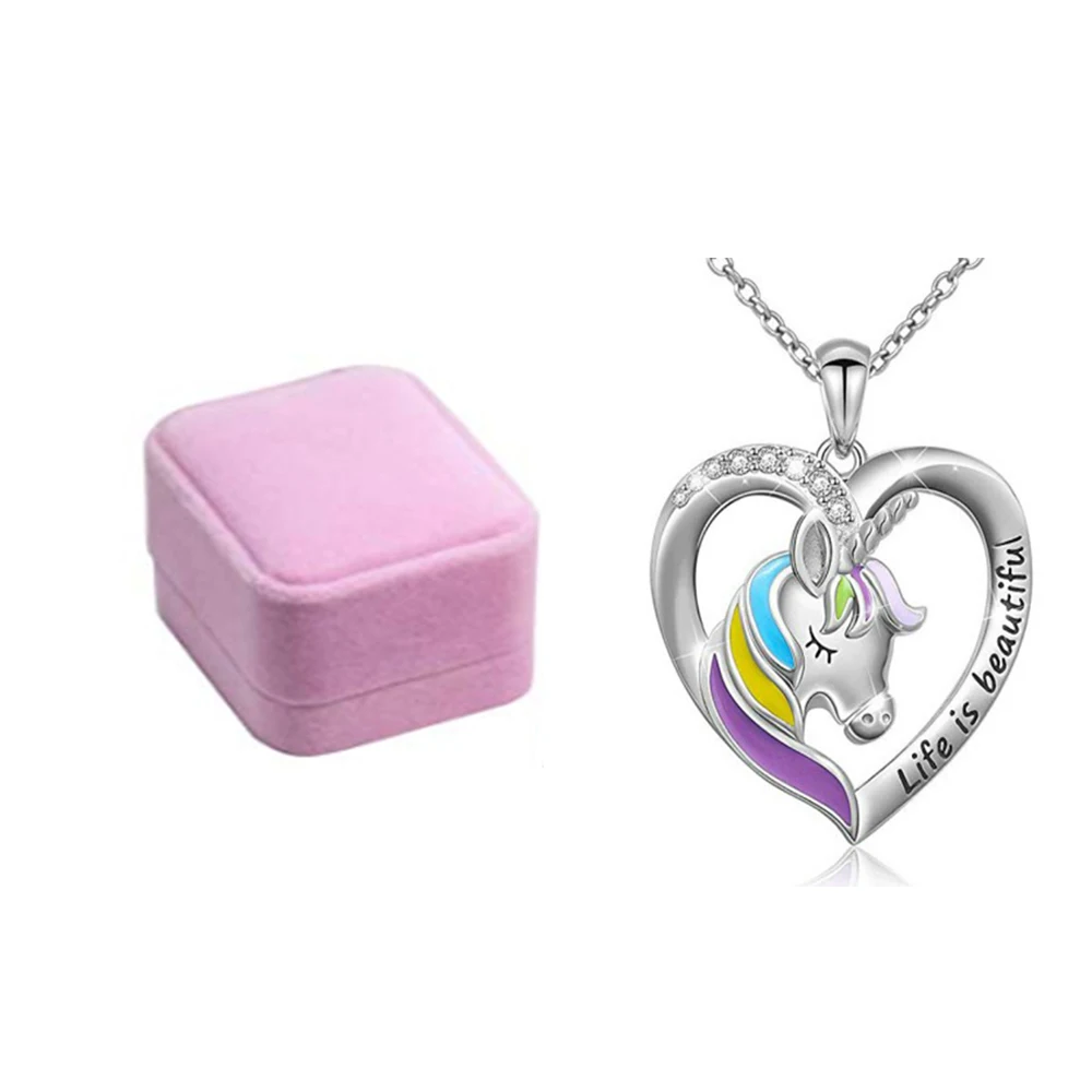 Rainbow Unicorn Gifts Necklace Sliver Light Pink Sparkling For