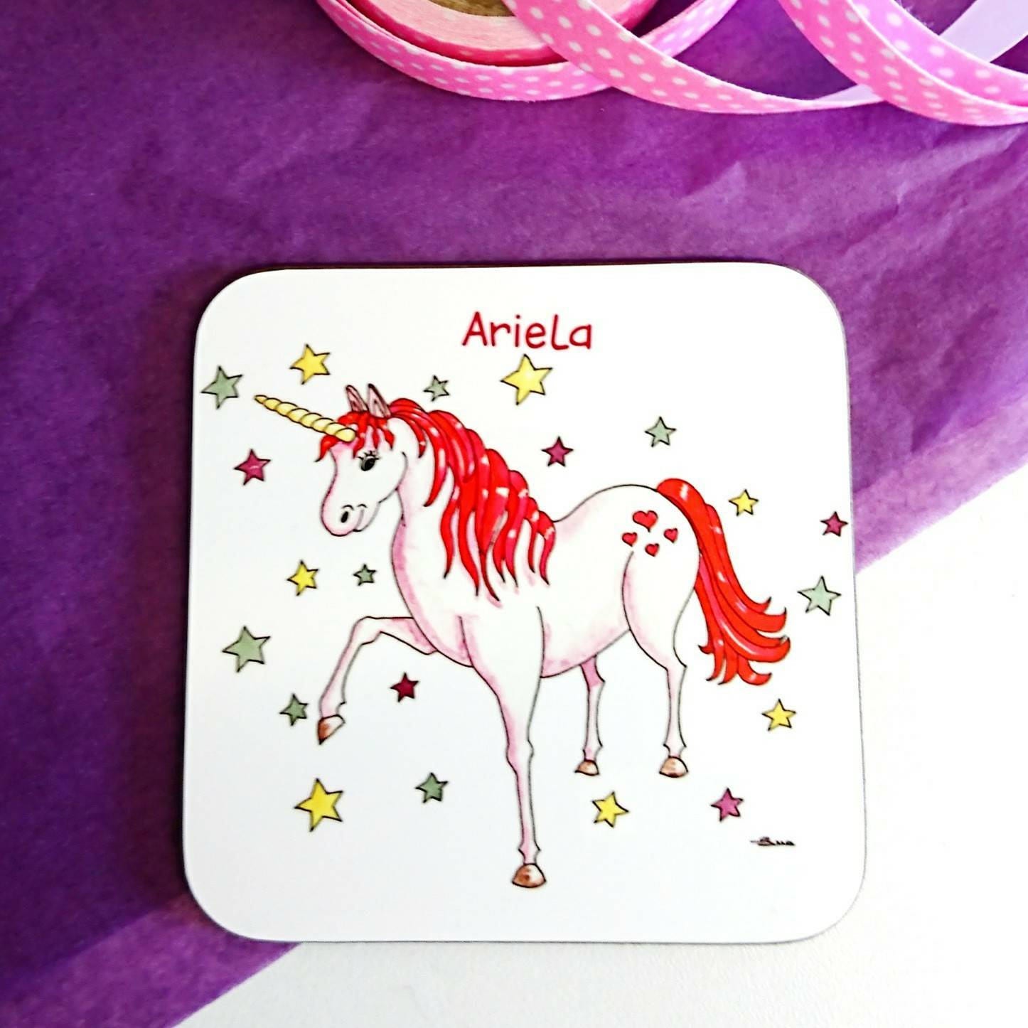 Unicorn Art Coaster Drinks Mat Pink Unicorn Gift Little Girls Etsy