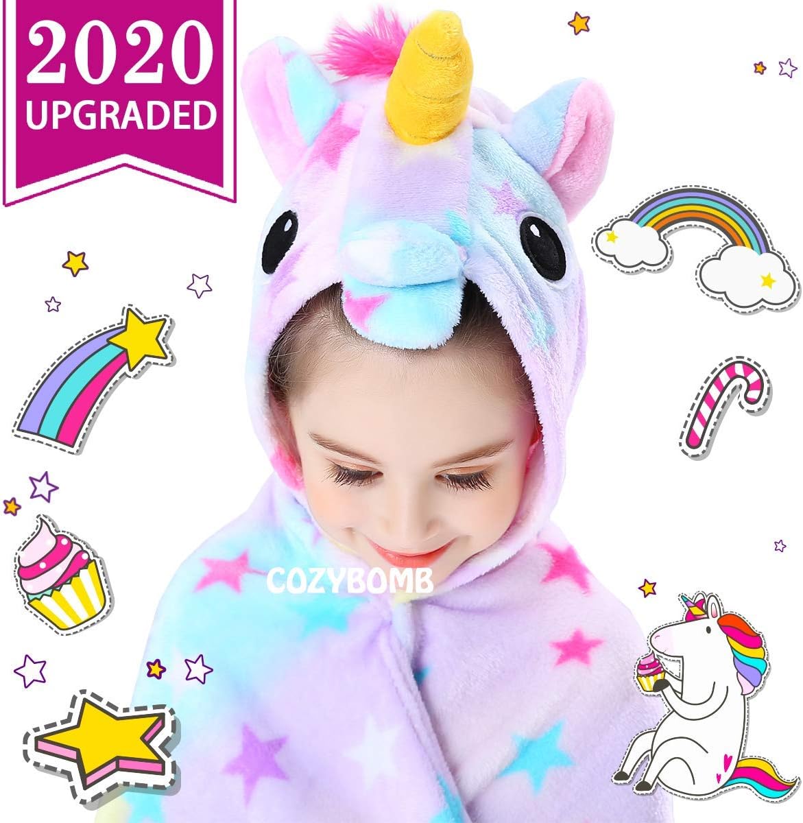 Amazon Com Cozybomb Rainbow Unicorn Gifts For Girls Wearable Fleece Soft Throw Blanket For Kids Girl Cute Hooded Plush Bathrobe Cozy Wrap With Hood Sleep Age 3 4 5 6 Year