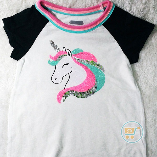 Tshirt Place Unicorn Black White Sequin Baju Branded Anak Cewe