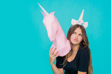 Funny Unicorn Little Girl On Blue Background Stock Video Download Video Clip Now Istock