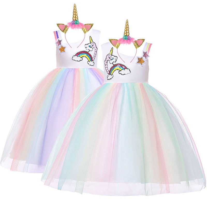 2020 Unicorn Girls Dresses Sequins Cosplay Princess Dresses Baby