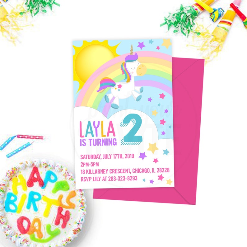 Rainbow Unicorn Party Invitation From 0 80 Each