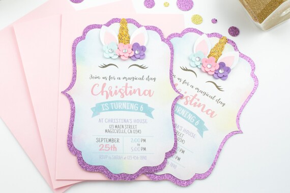 Amazon Com Unicorn Invitation Unicorn Birthday Party Invitation Rainbow Unicorn Party Invite Girls Party Theme Custom Handmade