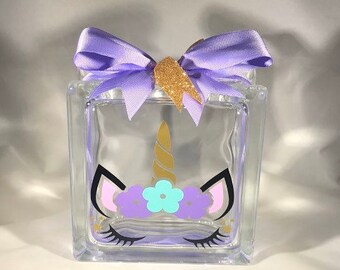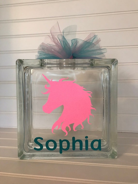 Unicorn Night Light Unicorn Piggy Bank Unicorn Glass Block Etsy