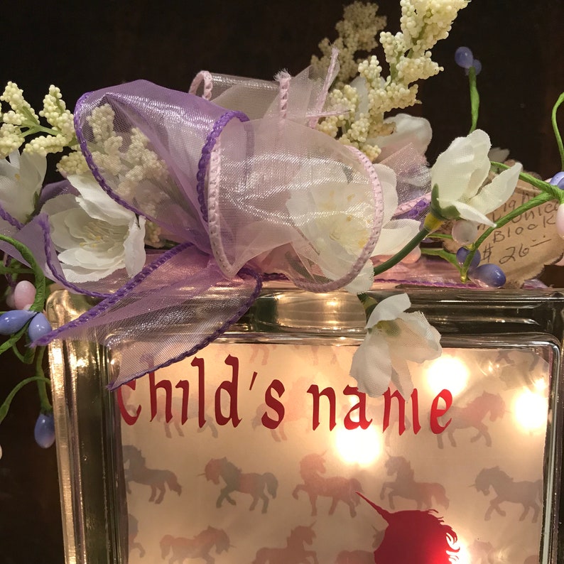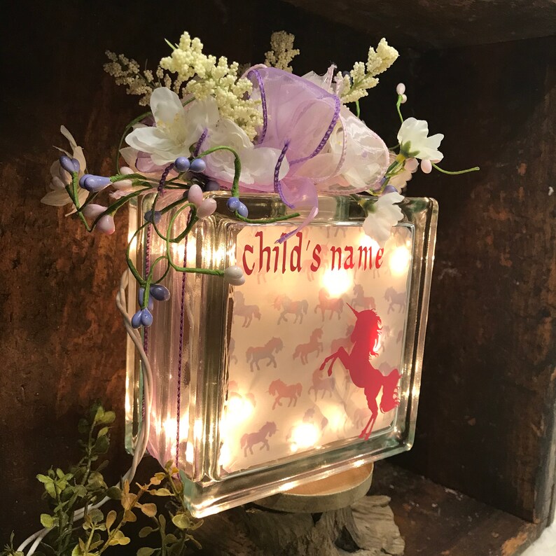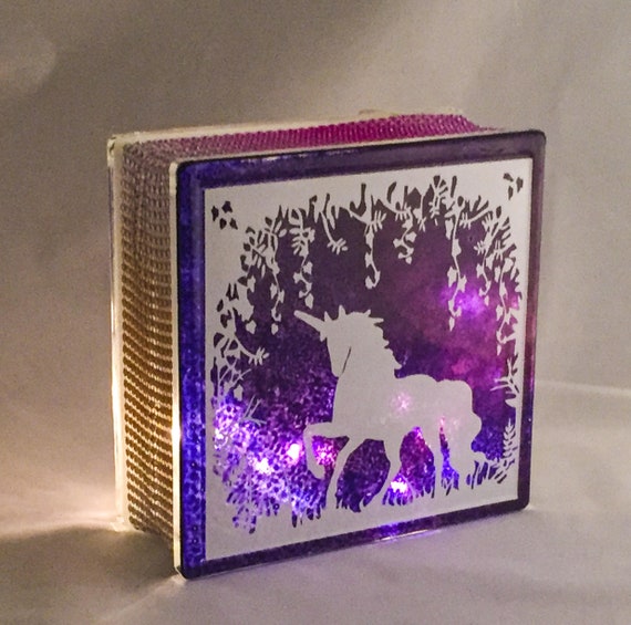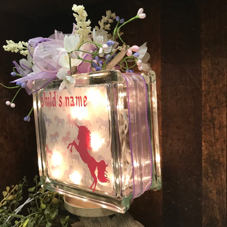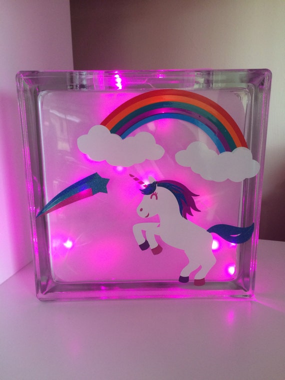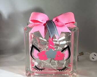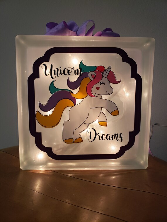 Unicorn Glass Block Nightlight Personalization Available Etsy