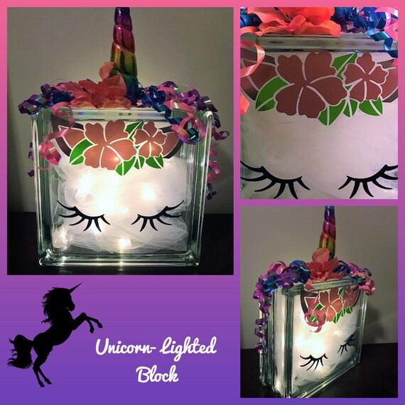 Diy Unicorn Block Light Glass Block Crafts Lighted Glass Blocks