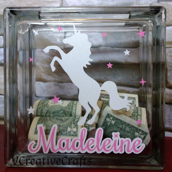 Unicorn Glass Block Piggy Bank Personalized Girl Piggy Etsy