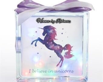 Led Unicorn Glass Light Up Block Lamp Night Light I Believe In
